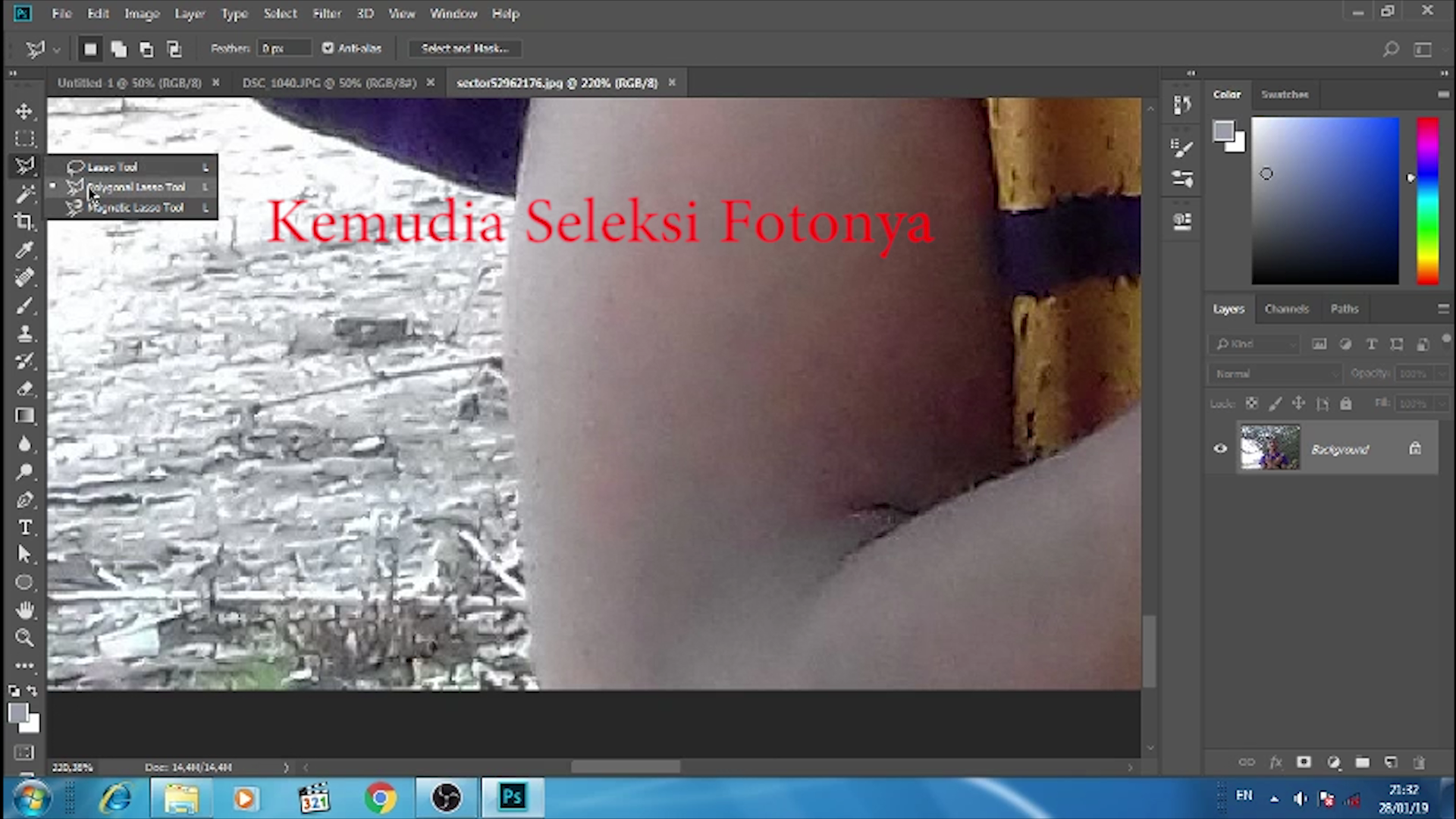 kemudian seleksi fotonya dengan polygonal lasso tool