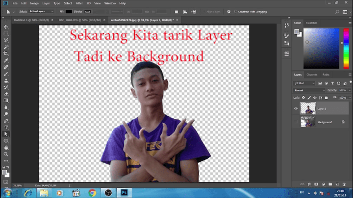 Kemudian kita pindahkan layer hasil tadi ke background Kita dan posisikan foto sesuai keinginan